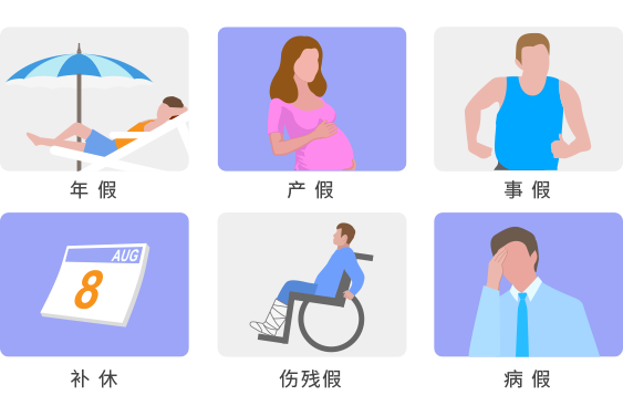 - 按需设置每个员工的假期类型及其计算方式(例如带薪年假,事假,病假,产假等)