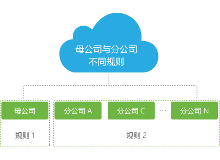 情况3:母公司与分公司不同规则,各分公司亦有不同规则